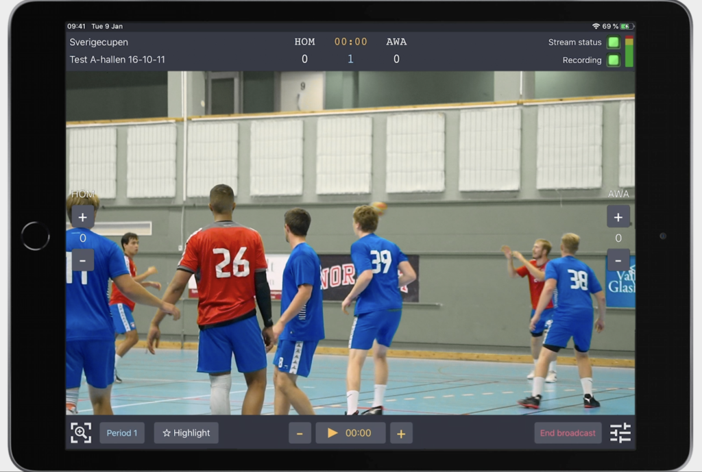 Example: A player shoots and makes a nice goal, the moment he or she makes the goal you click on the ‘’Highlight’’ button and this videoclip will be saved in your channel as a Highlight video.